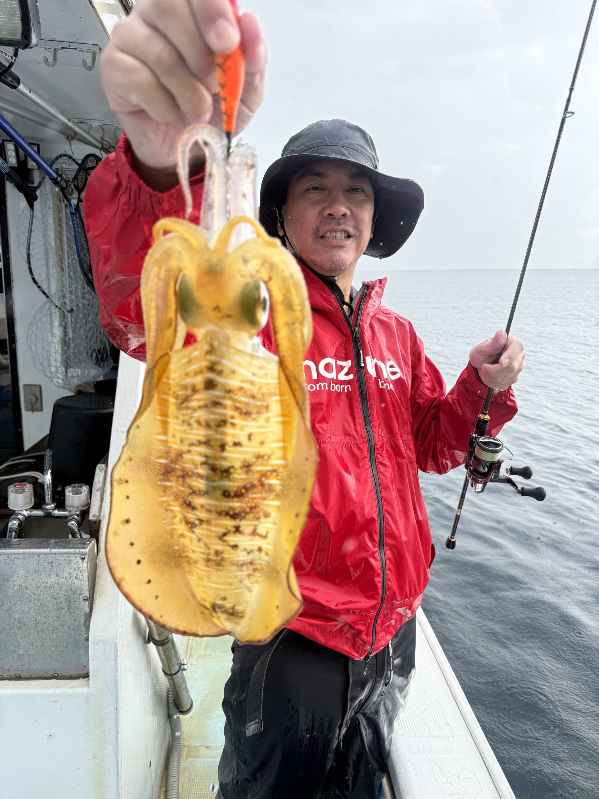 今日は風も弱く潮も風と逆で船が流れない、当たりはあるが中々乗らないテクニカルな日となりました。😢終盤に当たりカラーも見つかり、船もいい感じで流れたらポロポロと良型を含めて釣れ、小さいサイズはリリースして貰い終了となりました😊